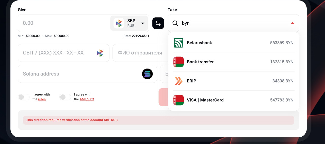Обменная платформа создана специально для тех, кто ищет удобный способ обмена валют, будь то путешественники, бизнесмены или жители приграничных регионов. Нам важно обеспечить максимально выгодные условия и простоту обмена. Если вы задумываетесь, где можно обменять рубли на белорусские рубли, где выгоднее провести эту операцию или как сделать это онлайн, мы готовы предложить вам решение, которое сэкономит ваше время, деньги и нервы. С нами вы сможете обменять рубли на белорусские рубли быстро и без лишних сложностей.