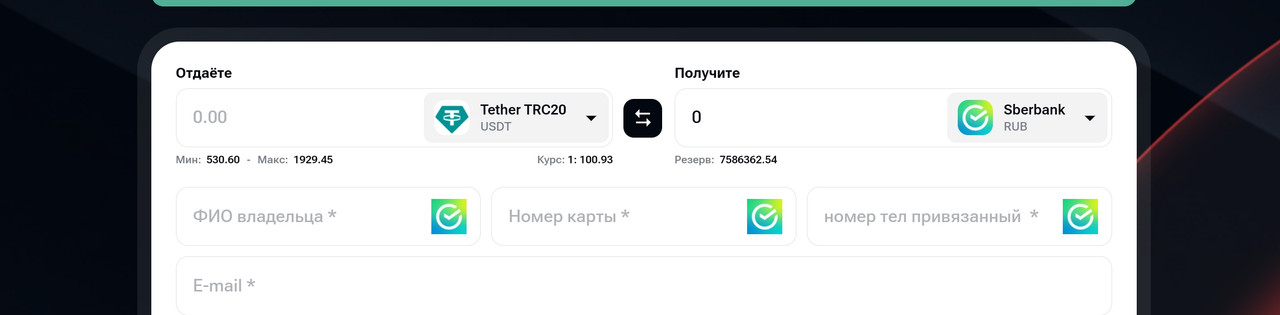 Наш криптообменник предлагает быстрый и безопасный обмен по выгодному курсу. Мы работаем с сетью TRC20, что позволяет минимизировать комиссии и ускорить транзакции. Наша платформа гарантирует надежность, прозрачные условия и оперативную поддержку на всех этапах сделки. Вы можете обменять USDT на Сбербанк рубли всего за несколько минут, следуя простым инструкциям.